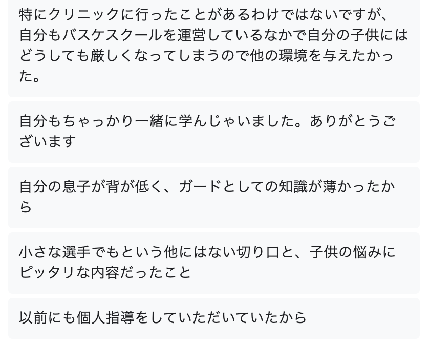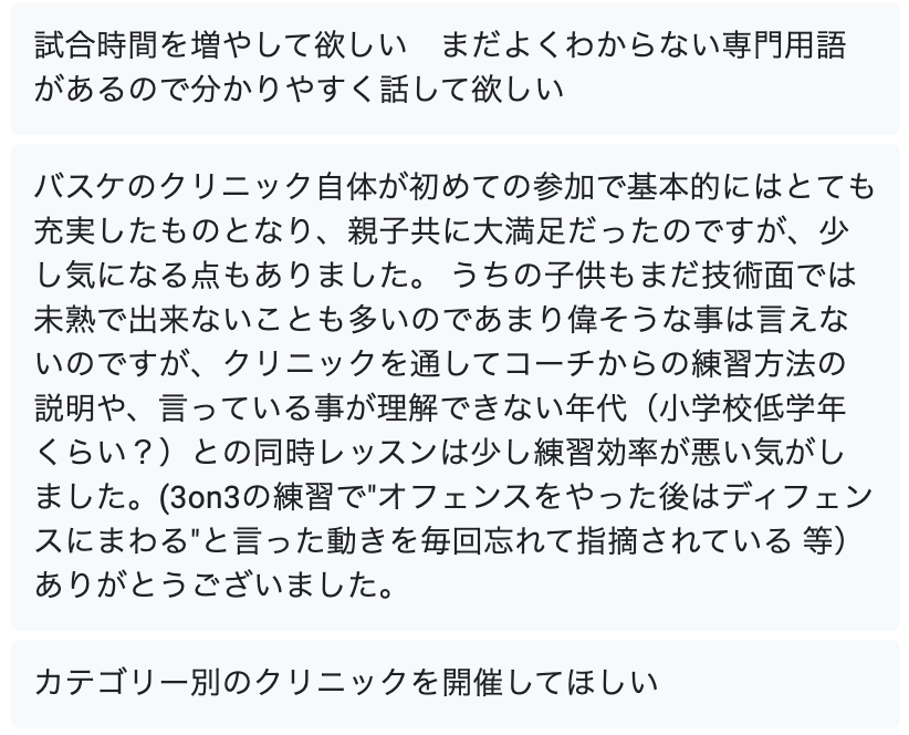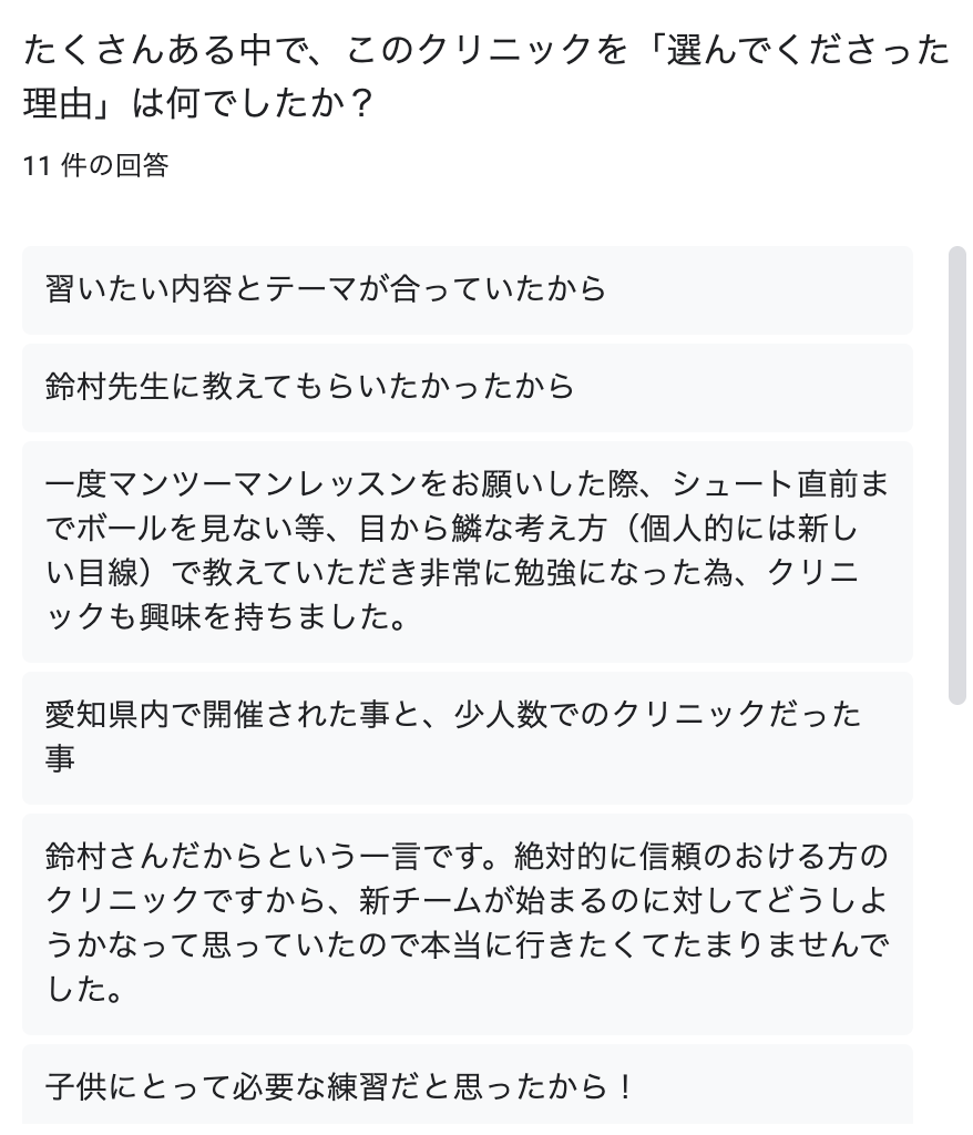 クリニック開催後にアンケートをとった結果をシェアします。