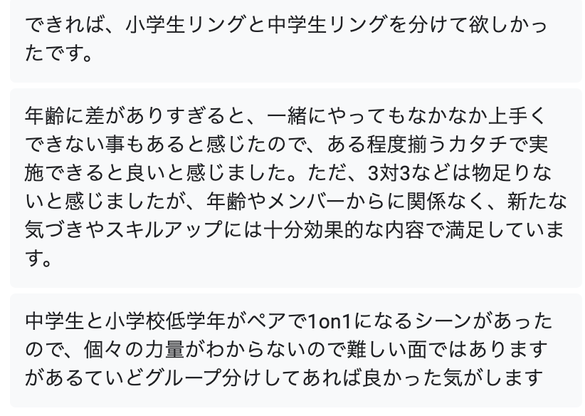 参加前のアンケートや親御さんとお子さんから寄せられた声です。